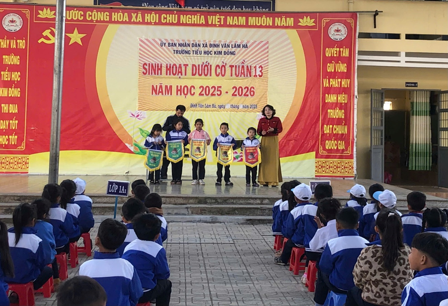 Thực hiện kế hoạch tổ chức Sinh hoạt dưới cờ năm học 2025-2026 của Trường Tiểu học Kim Đồng sáng ngày 8/12/2025 giáo viên tổ khối 2 đã thực hiện chuyên đề: Hoạt động trải nghiệm lớp 2 - Sinh hoạt dưới cờ với chủ đề: “Vẻ đẹp học sinh”